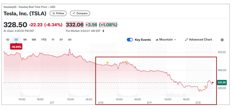 테슬라 주가 급락, 어디까지 하락할까?들어가며: 테슬라, 연이은 하락의 이유는?최근 몇 주 동안 테슬라(TSLA) 주가는 급격한 하락세를 보이고 있다.특히 2월 12일 뉴욕 증시에서 6.34% 하락하며 5거래일 연속 하락을 기록했고, 이 기간 동안 무려 **16%**나 빠졌다.  📉 현재 테슬라 주가 흐름:현재 주가: 328.50달러최근 최고점 대비 하락폭: 약 31%2025년 들어 하락률: 약 13.4%그렇다면, 테슬라 주가가 하락한 이유는 무엇일까?그리고 앞으로 반등할 가능성이 있을까? 📌 목차테슬라 주가 급락 원인 분석머스크의 오픈AI 인수 시도, 테슬라에 악재?BYD의 자율주행 무료화, 테슬라에 위협될까?테슬라 주가 전망: 반등 가능성은?결론: 투자자들은 어떻게 대응해야 할까?1. 테슬라 주가..